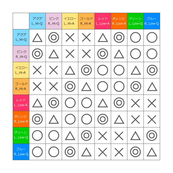 ◎→とても良い(すべてのタイプが逆)(脳タイプだけが逆)
